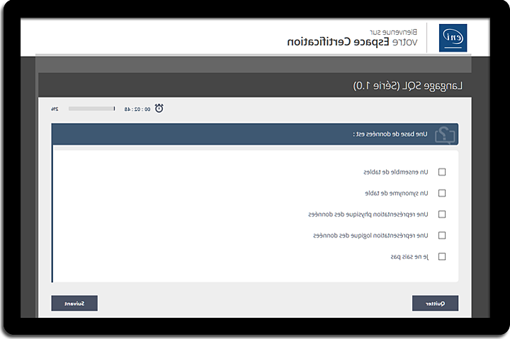 Le passage de la certification est chronométré : le candidat dispose de 1 à 2 heure(s) selon la certification choisie.